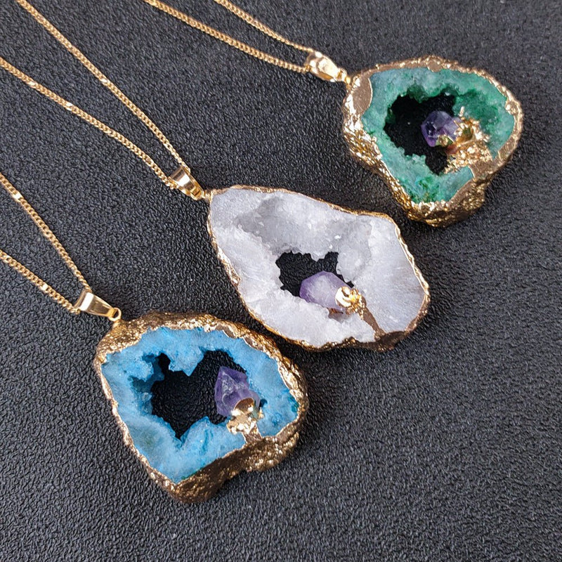 - 1 x Pendentif géode de cristal creux (couleur au choix)