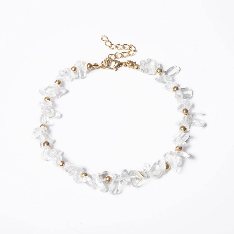 DĂ©couvrez le bracelet de cheville en pierres brutes gĂ©omĂ©triques irrĂ©guliĂšres : une fusion dĂ©licate entre la beautĂ© brute de la nature et le savoir-faire artisanal. EnfilĂ© Ă la main avec dâauthentiques pierres brutes blanches et transparentes aux formes gĂ©omĂ©triques irrĂ©guliĂšres, et rehaussĂ© de perles dorĂ©es discrĂštes, ce bracelet sâenroule autour de votre cheville comme un symbole dâĂ©lĂ©gance naturelle et dâune vie consciente. Conçu pour la femme moderne qui trouve la beautĂ© dans lâauthenticitĂ©, il est plus quâun accessoire : câest un lien tangible avec lâĂ©nergie intemporelle de la Terre.