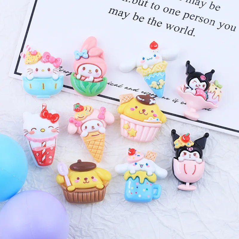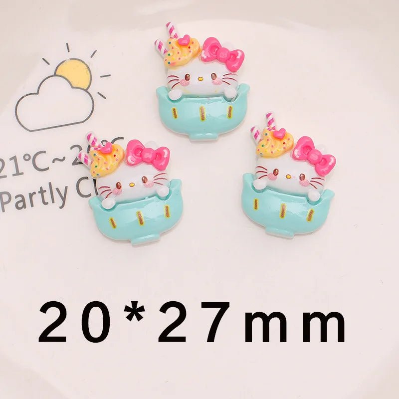- Contenu : 10 accessoires/cabochons en résine (chats, lapins, glaces, boissons).