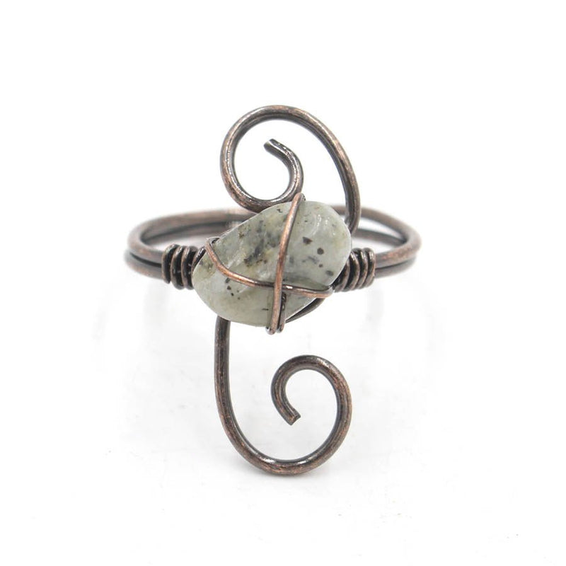🌟 Copper Ancient Winding S-shaped Irregular Rough Stone Crystal Ring — Earth’s Energy, Artisan’s Legacy 🌟