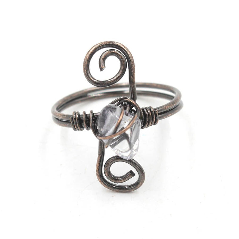 Discover the Copper Ancient Winding S-Shaped Crystal Ring—a collection where raw nature meets artisanal craftsmanship. Each ring features a unique, untreated natural stone (amethyst, pink crystal, tiger’s eye, black agate, green aventurine, red agate, blue crystal, white crystal, red stone, or flash crystal) hand-wrapped in electroplated copper wire, forming an elegant S-shaped spiral that symbolizes flow and resilience. Designed for both men and women, this adjustable ring (approx. 18mm diameter) blends bohemian elegance with metaphysical power, making it more than jewelry—it’s a wearable talisman for the modern soul.